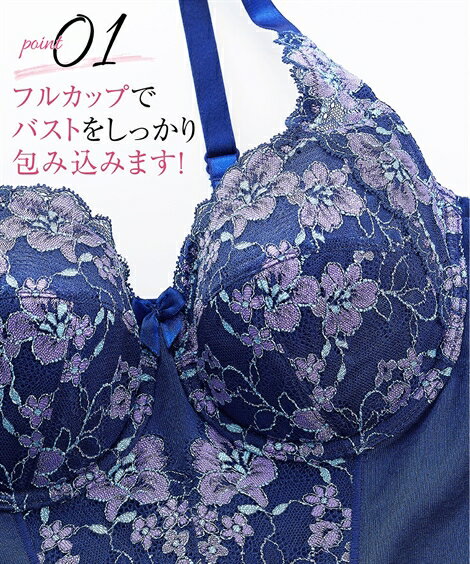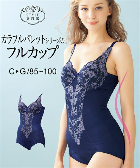 大きいサイズ レディース フルカップ ボディスーツ カラフルパレットブラ仕様 ネイビー C85_LL〜D95_3L ニッセン