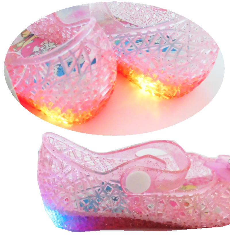 光るガラスの靴で登場!踵がピカピカ光ります◎きらきらラメが散りばめられてかわいい!歩く度にかかとが光るからお祭りやイベントなどで目立つ事間違いなし◎ 【仕様】 素材 :PVC サイズ :16/17/18/19cm ※作りはゆったりしています。